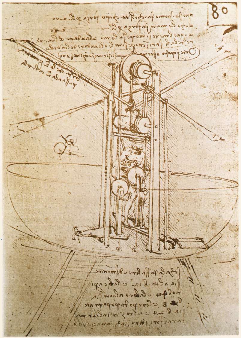 Kao graditelj radio je u Milanu (Castello Sforzesco), projektirao je urbanističke osnove za idealne gradove budućnosti. Osobito su zanimljivi njegovi crteži, rukopisi i studije biljaka, životinja i ljudskoga tijela kao i mnogih pojava u prirodi te nacrti novih izuma. Izmislio je i konstrurirao mnogobrojne naprave i strojeve kojima je genijalno anticipirao mnoge kasnije zamisli i tehnička rješenja (tenk, ronilačko zvono, podmornicu, stroj za letenje).