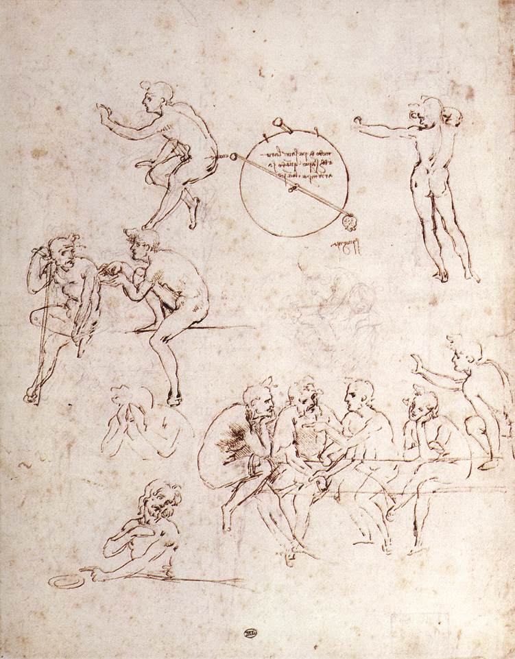 Leonardo da Vinci, talijanski slikar, graditelj, kipar, inženjer, znanstvenik i izumitelj (Vinci, kraj Empolija, 15. IV. 1452 – dvorac Cloux, kraj Amboisea, Francuska, 2. V. 1519). Školovao se u radionici → A. del Verrocchija u Firenci. Od 1482. do 1499. djelovao na dvoru vojvode Lodovica Sforze u Milanu, s prekidima naizmjenično boravio u Firenci i Milanu, od 1513. do 1516. u Rimu, a od 1517. do smrti u Francuskoj u službi kralja Franje I.
