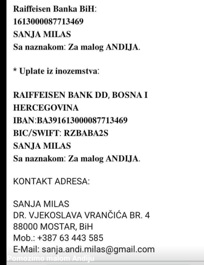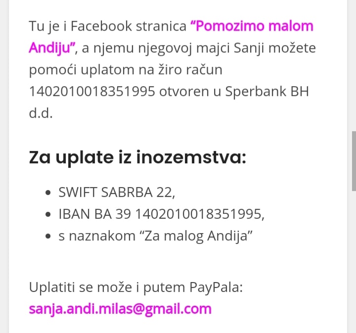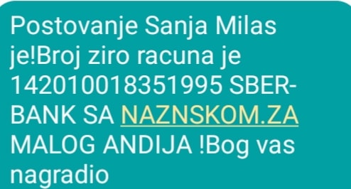 Upravo smo razgovarale, teško joj je… poslala mi je i brojeve žiro računa na koji možete vršiti uplate.