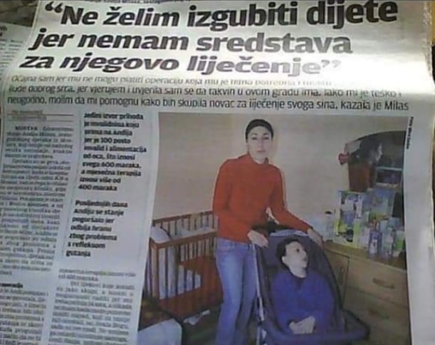 Prikupljena sredstva od prodaje će ići za pomoć malom Andiju Milas, koji boluje od nekoliko različitih bolesti, a samohna majka nema dovoljno sredstava da se brine o svom bolesnom sinu Andiju i ocu kojemu su nedavno amputirali i nogu.