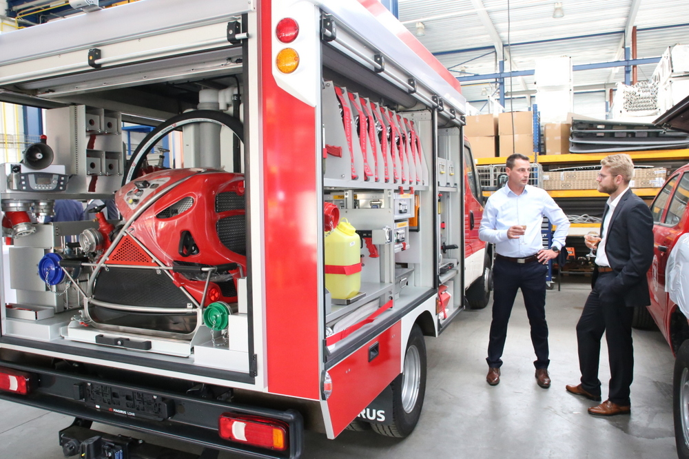 Kako je na početku otvaranja u svom pozdravu istaknuo jedan od suvlasnika Željko Habazin, ovo je rezultat dugogodišnjeg predanog rada trojice prijatelja koji su nakon iskustava prikupljenih radeći za vodeće europske proizvođače vatrogasnih vozila odlučili pokrenuti svoju priču. Sve je krenulo od malog obrta ‘Vatrooprema SD’, kojeg je osnovao Davor Kulbicki i koji se svojim se kvalitetnim radom nametnuo kao pouzdan partner korisnicima i proizvođačima vatrogasnih vozila.“