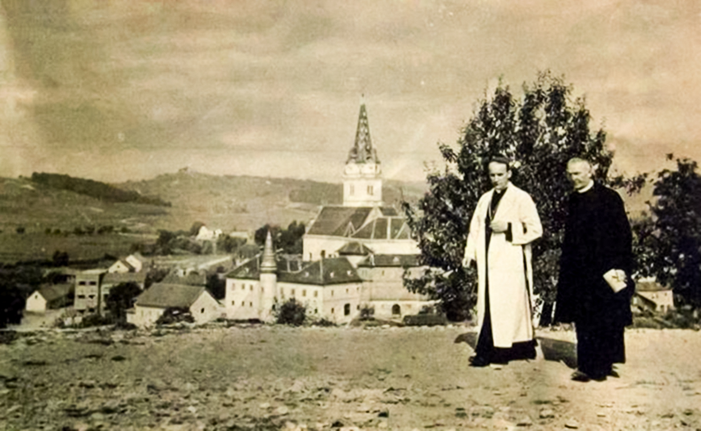 Foto: Nadbiskup Stepinac  u molitvi pred prvom postajom marijabistričkog križnog puta 1943. godine.